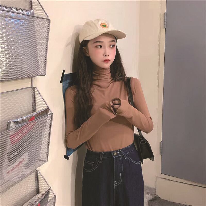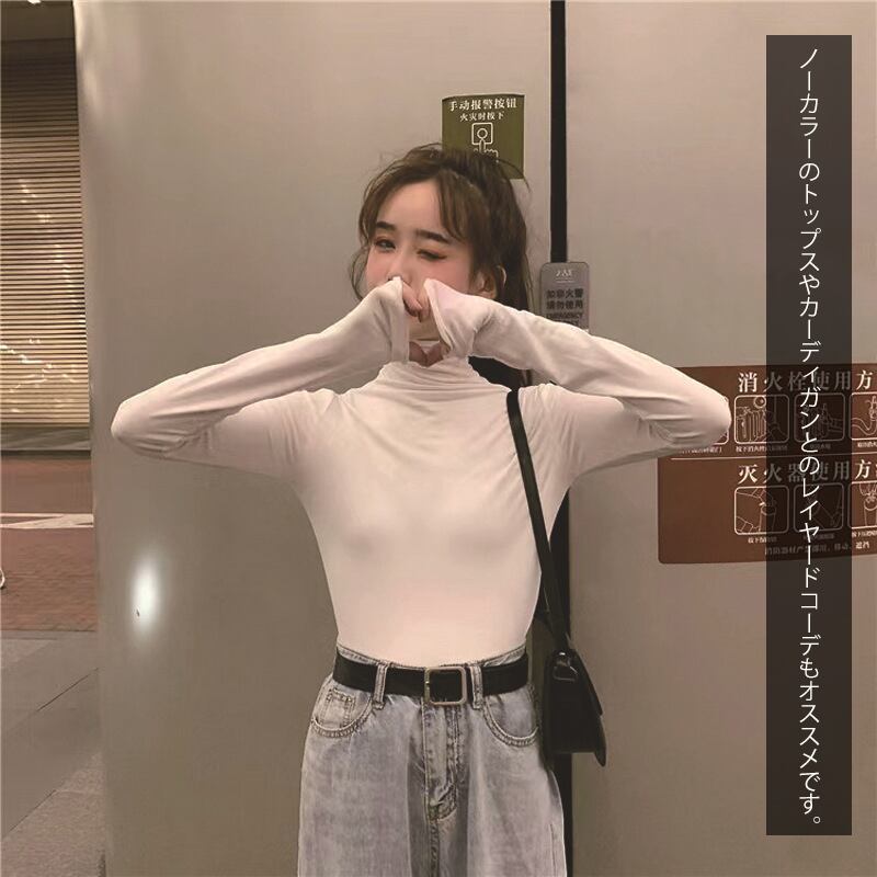 ・ストールを巻いてもかさばらずスッキリ見えするタートルネック。