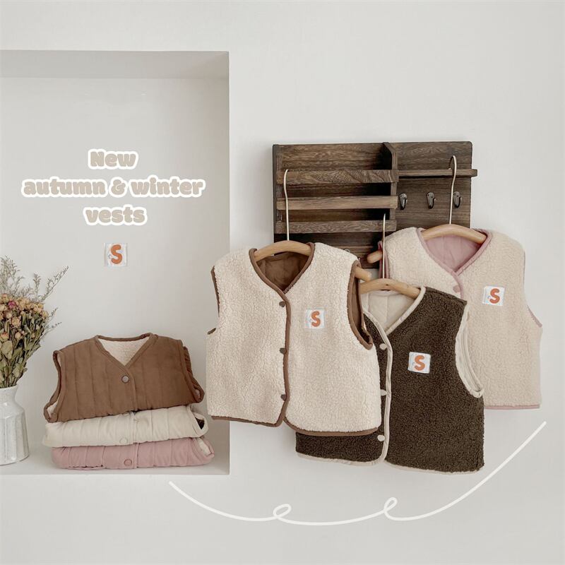 ins 秋冬新作 リバーシブル 子供 レトロ 中綿ベスト チョッキ 男女兼用 カジュアル トップス