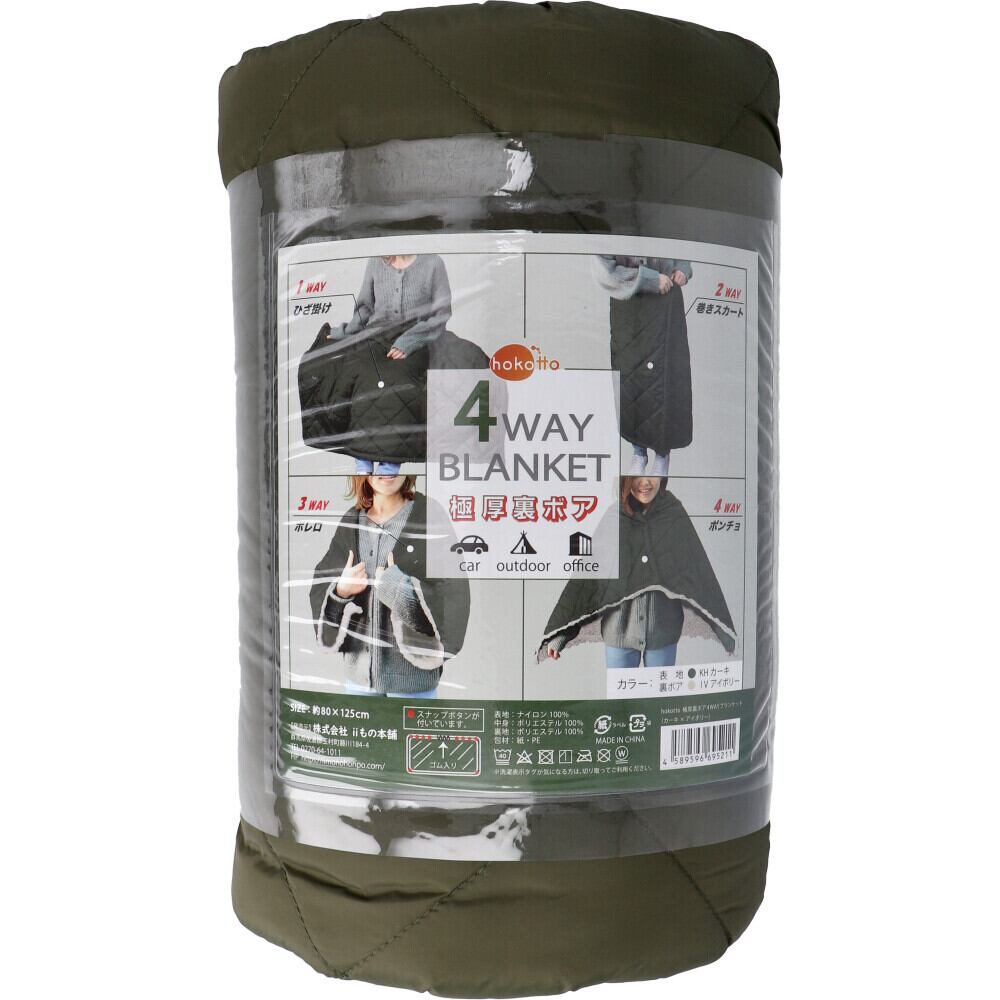 アイボリー [3月26日まで特価]hokotto 極厚裏ボア 4WAYブランケット 80×125cm カーキ×アイボリー